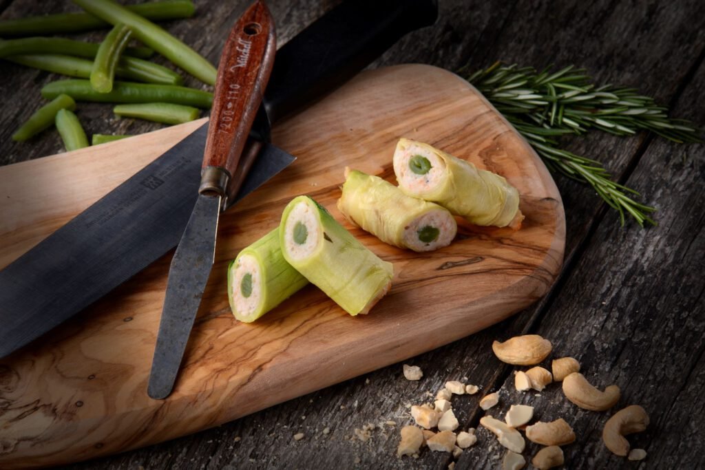COURGETTE ROLLETJES GEVULD MET GARNALEN